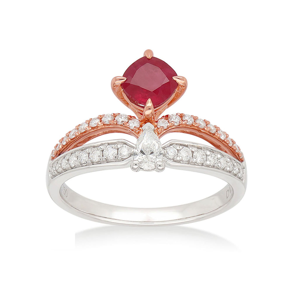 Heirloom 18ct White and Rose Gold Cushion & Round Cut 5mm Ruby Diamond Set 0.34 Carat tw Ring
