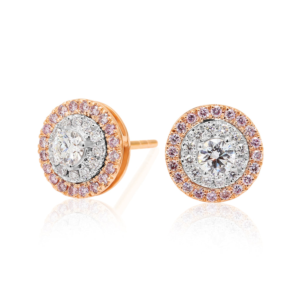 18ct Rose & White Gold Round Cut 0.73 ctw White & Argyle Authenticated Pink Earrings