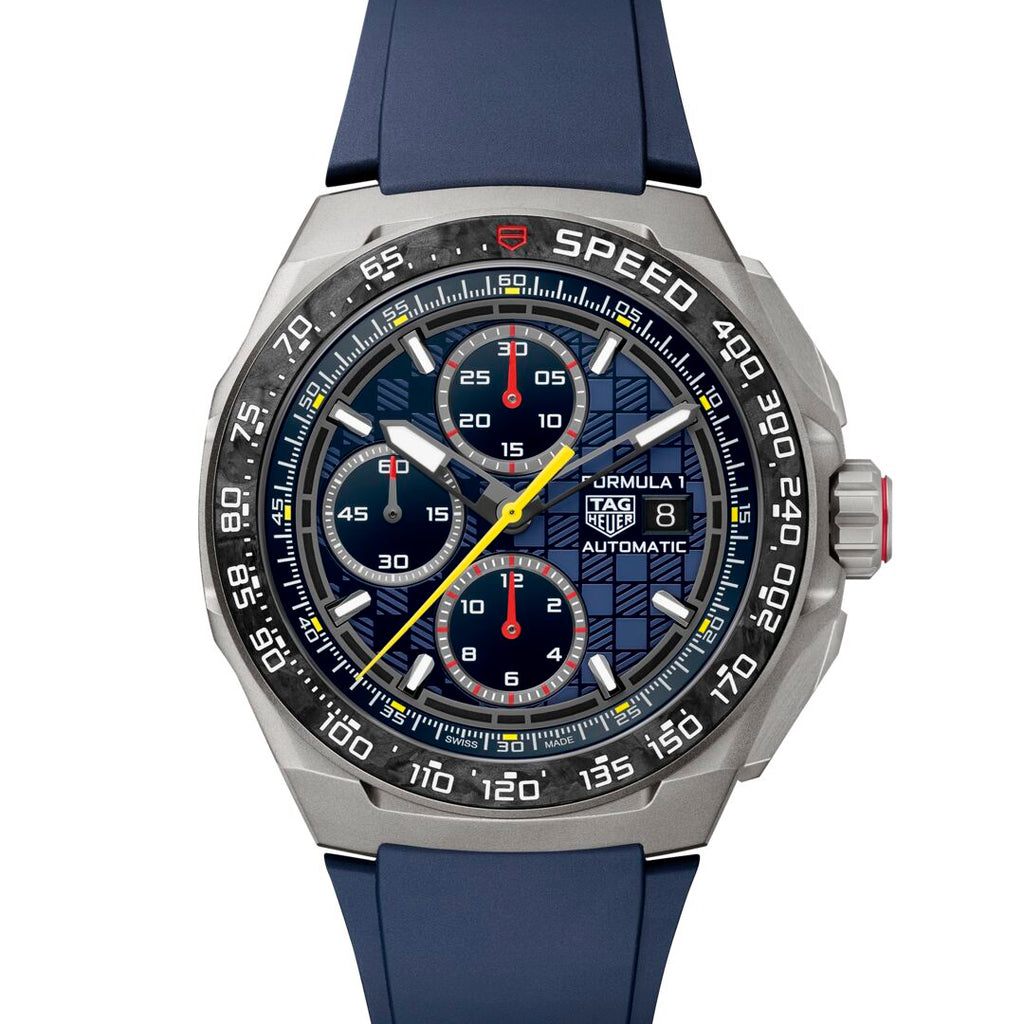TAG Heuer brings its racing DNA to the fore with the TAG Heuer Formula 1 Automatic Chronograph x Oracle Red Bull Racing. This striking timepiece pays homage to the Oracle Red Bull Racing team, combining its iconic racing colours with cutting-edge materials for the ultimate motorsport-inspired watch.