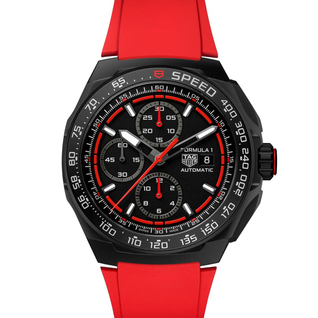 Inspired by the intensity of racing, the TAG Heuer Formula 1 Chronograph in 44mm is crafted for true racing enthusiasts. The sleek titanium grade 2 case and vibrant red accents make this timepiece a bold statement on and off the track.