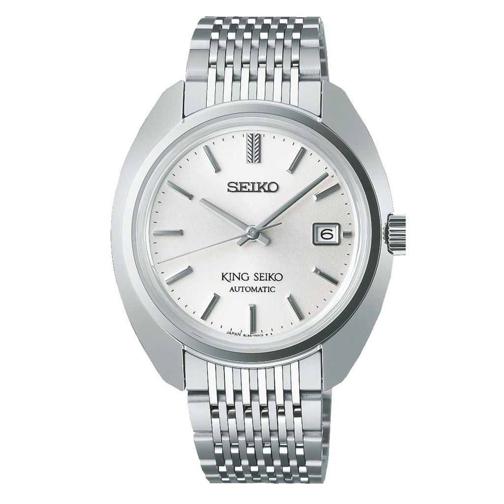 Reflecting the city of Tokyo, where tradition and modernity coexist, the silver dial evokes the bustling metropolis and features a prominent 12 o’clock marker decoratively carved with an arrow feather pattern, a date calendar, and hour and minute hands cut on three sides to provide enhanced beauty and visibility. Crafted of stainless steel, the case flows seamlessly to the multi-row bracelet equipped with impressively narrow links to realize a truly streamlined fit on the wrist. With finishing characteristic of the original collection, this exceptional timepiece displays a King Seiko crest on caseback and crown and includes a box shaped sapphire crystal with anti-reflective coating on the inner surface and a deployment clasp with push-button release. 5 bar, 50M Water Resistant.