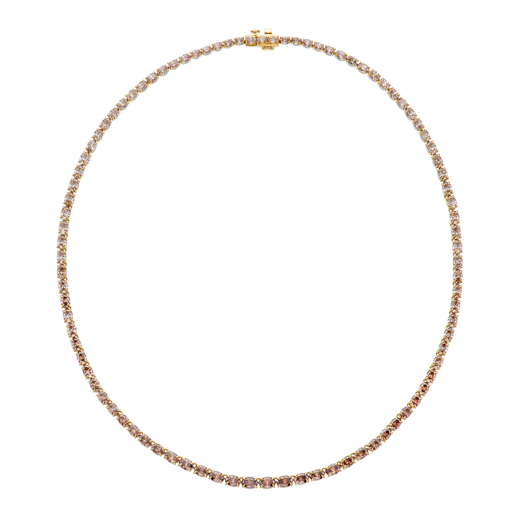 The interplay between champagne's honeyed radiance and crisp white sparkle creates a captivating visual symphony that adapts beautifully to any light. Designed for those with an appreciation for distinctive luxury, this necklace transcends fleeting trends, offering enduring elegance and refined beauty that speaks to the wearer's discerning taste.