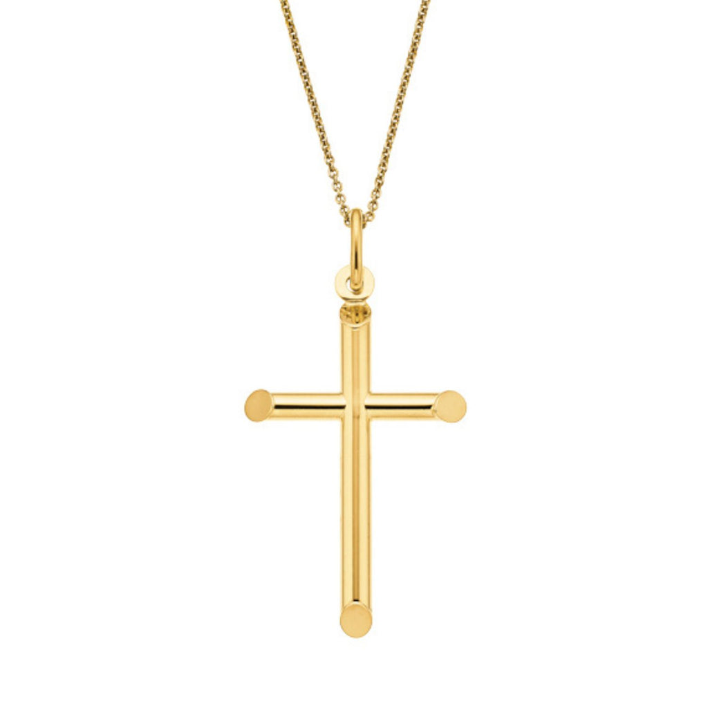 9ct Yellow Gold 32mm Tube Cross Pendant
