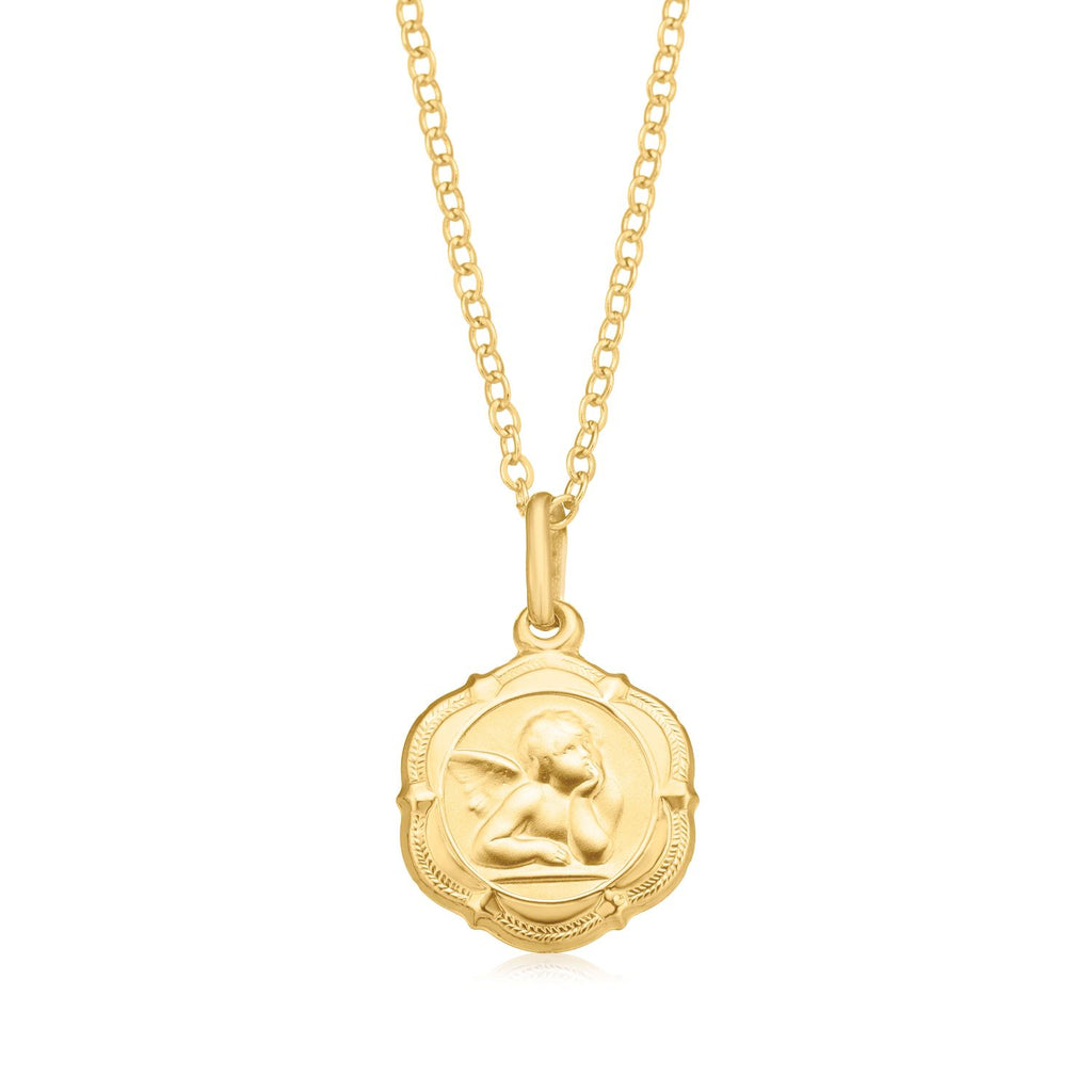 9ct Yellow Gold Round 14mm Fancy Edge Angel Pendant