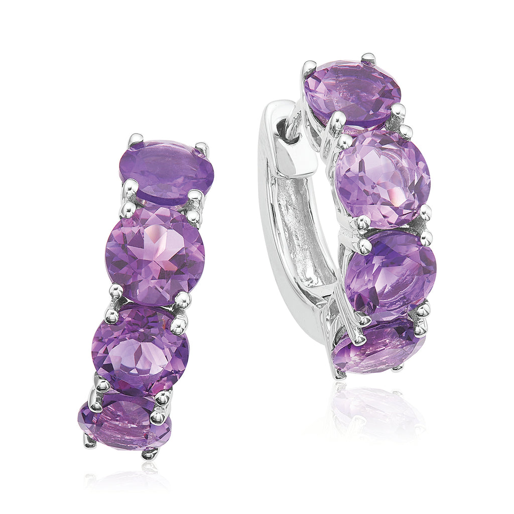 Enhance your look with these lovely huggies. They feature amethyst stones set in white gold and are perfect for daily wear.