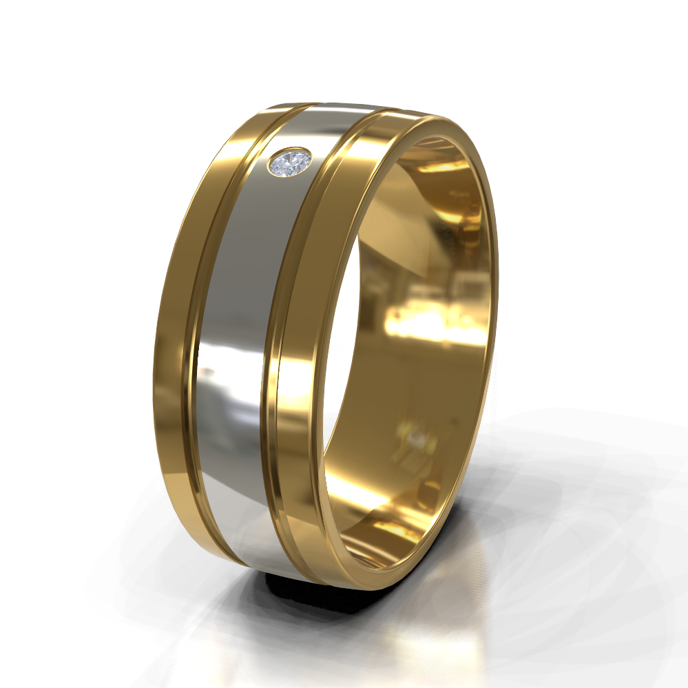 9ct Yellow Gold with Round Shape 0.03 Carat 8.0mm Multi-Tone Band