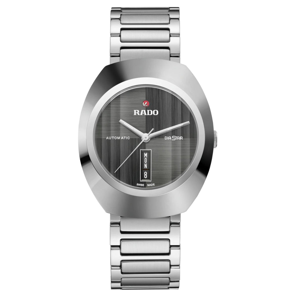 The unique DiaStar Original has a diameter of 38 mm and is water resistant down to 100 m. Framed by an ultra-shiny Ceramos™ coiffe with polished angles and detailing set over a matching, monochrome stainless-steel case, this beautiful watch is rounded off with a parallel-stripe-faceted sapphire crystal. Specifications include a dark grey brushed dial with two directions, rhodium coloured hands with white Super-LumiNova®, and a day date display matching the colour of the dial. Inside, the Rado R764 automatic movement with antimagnetic Nivachron™ offers 80 hours of power reserve. The bracelet is made of polished and brushed stainless steel.
