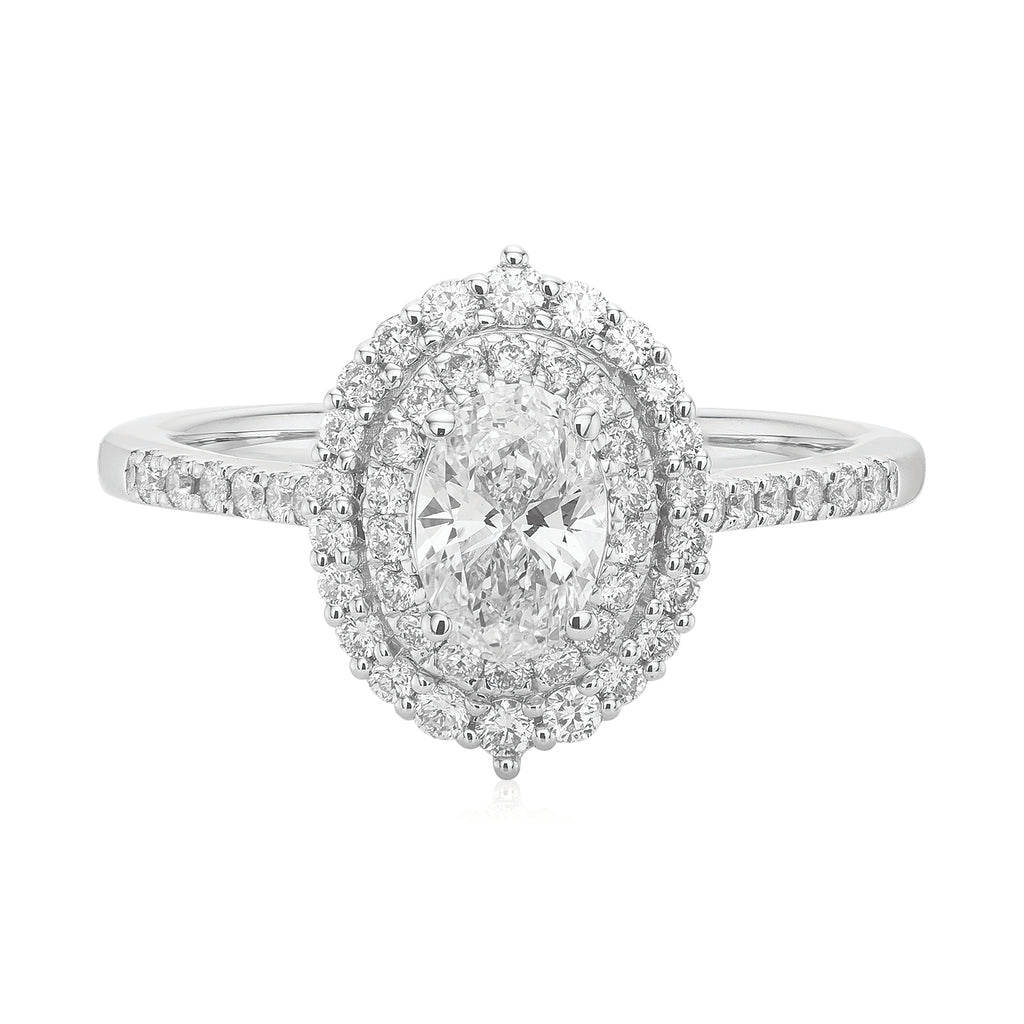 Halo 18ct White Gold Oval & Round Brilliant Cut 1 Carat tw Certified Ring
