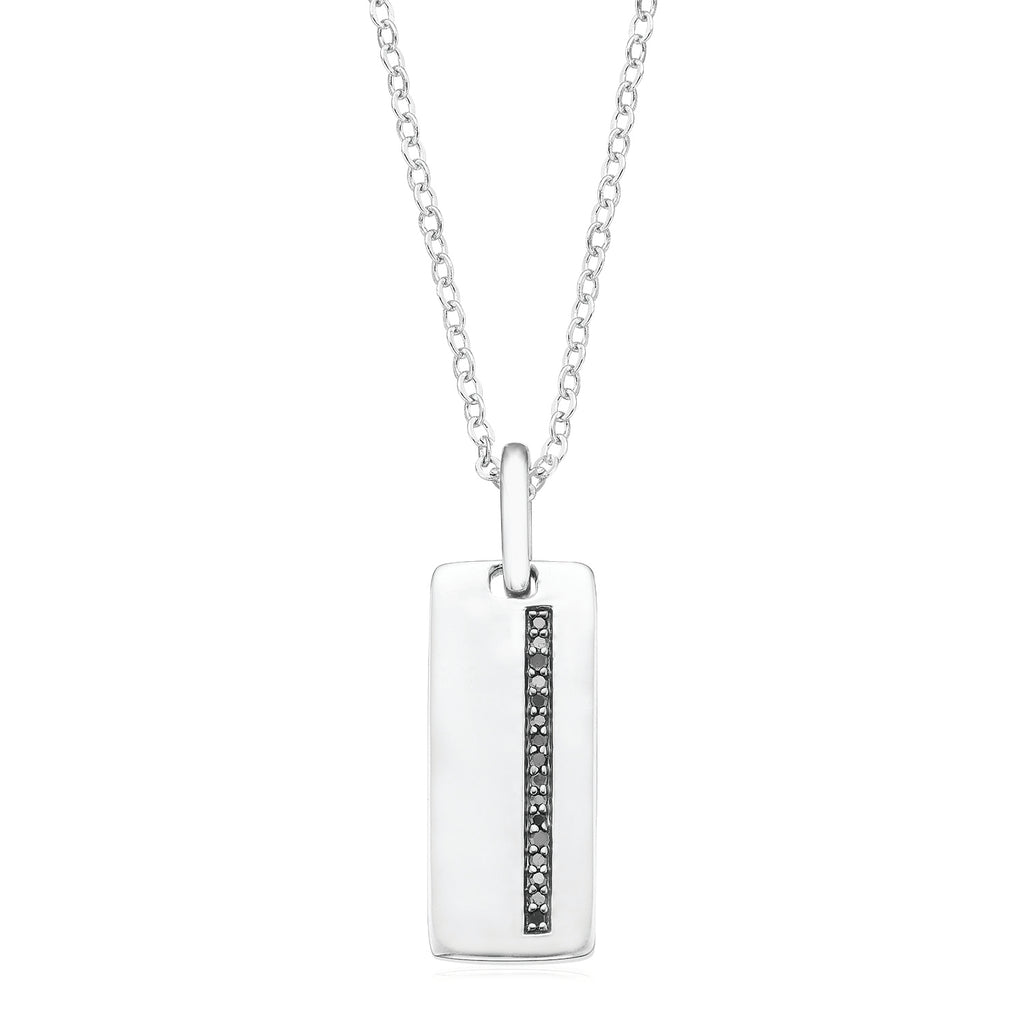 This 0.10 carat total weight pendant is crafted from high quality sterling silver and features a black diamond dog tag. A classy statement piece, this is sure to make it into your everyone wear.