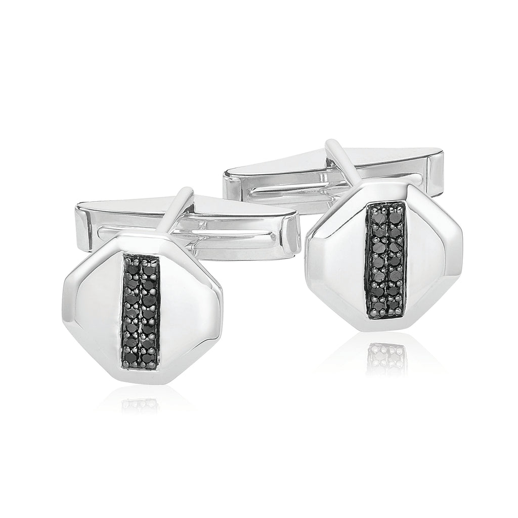 Give your formalwear the perfect finishing touch with these classic sterling silver cufflinks featuring round black diamonds totalling 0.20 carats tw.