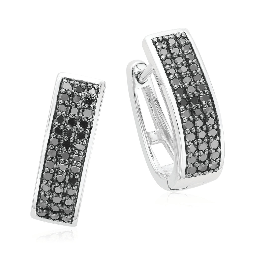 Sterling Silver Round 0.5 Carat tw Black Diamond Hoop Earrings