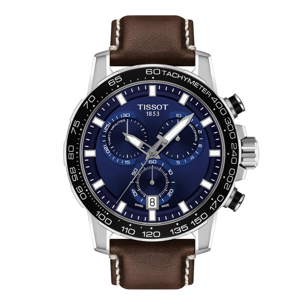 The Supersport Chrono is a masucline and dynamic collection from Tissot that was created to suit sports conditions and everyday life. With a bold design and generous 45.5mm case size, the Supersport has massive SuperLuminova indexes for readability in the dark and chronograph functions. Paired with a vintage hand-stitched leather strap.